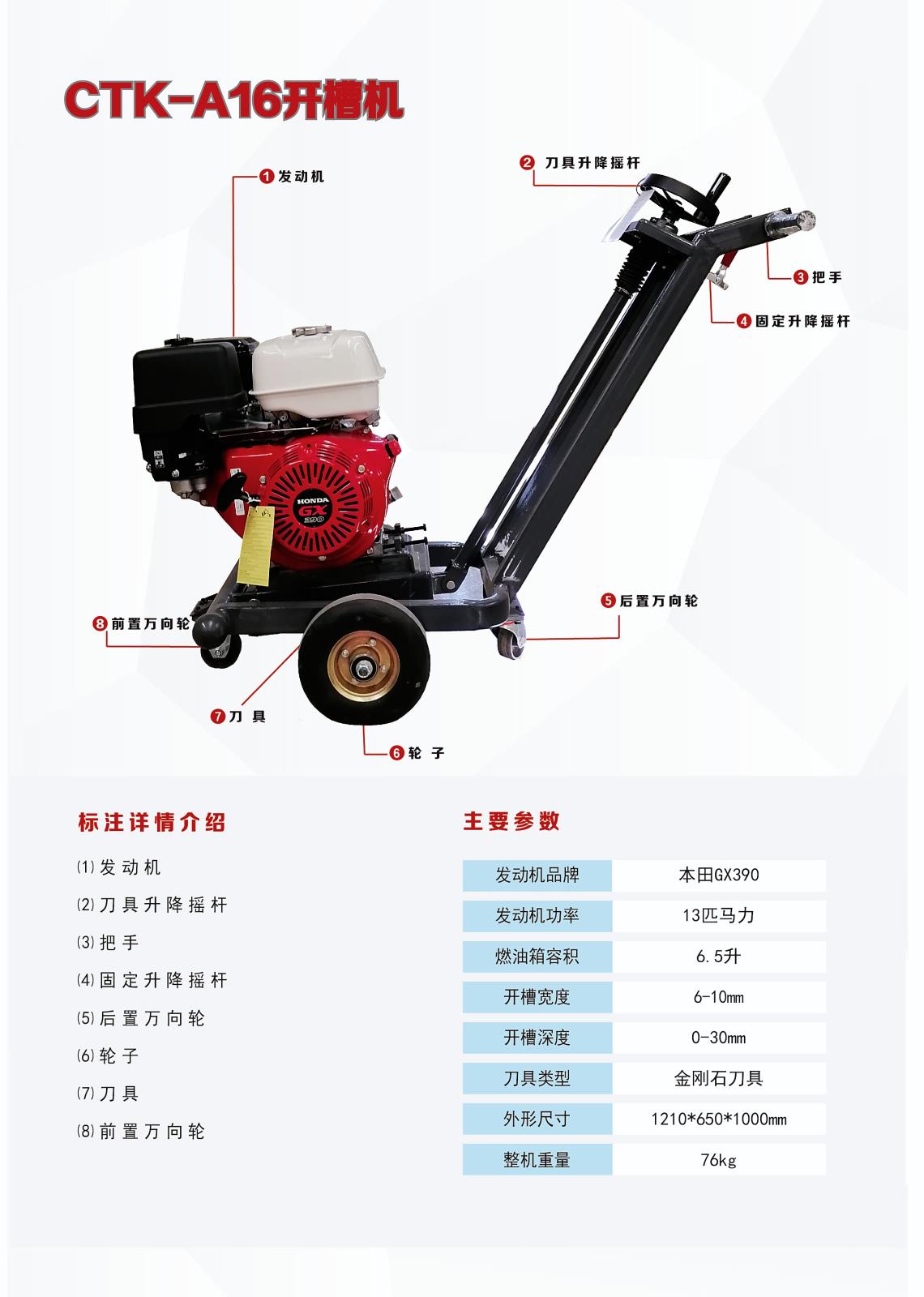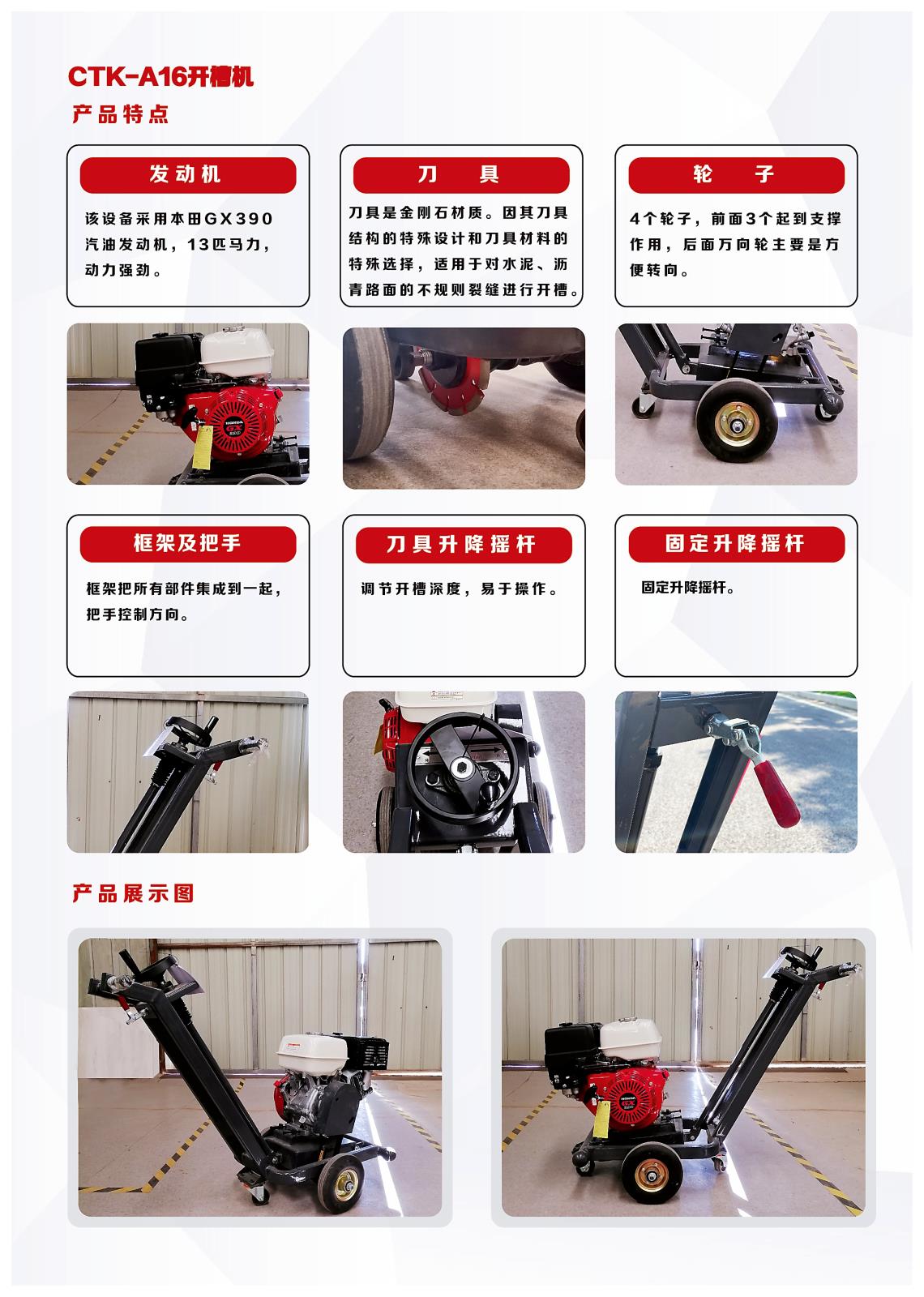 長泰公路在多次施工中總結(jié)經(jīng)驗(yàn),推出了全新版本的A16開槽機(jī),向后拉的行走方式,方便施工人員針對不規(guī)則裂縫進(jìn)行切割、開槽;開槽深度可調(diào)節(jié)0-30mm;全新輪胎設(shè)計(jì),對縫方便,日均施工量可達(dá)5000米。