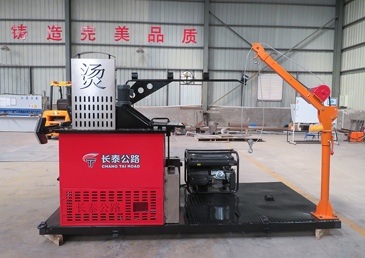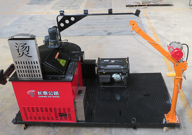 由6.5kw的汽油發(fā)電機(jī)組給設(shè)備提供電力,各部件開關(guān)打開后,燃燒器開始加熱導(dǎo)熱油,導(dǎo)熱油間接加熱灌縫膠,槍管使用電加熱,膠和槍管都達(dá)到設(shè)定溫度后,即可使用槍管或者S30小手推灌縫。